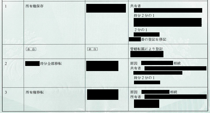 建物については「所有権移転」、土地については「乙持分全部(順位○番で登記した持分)、乙持分全部(順位○番で登記した持分)移転」として下さいとのことでした。